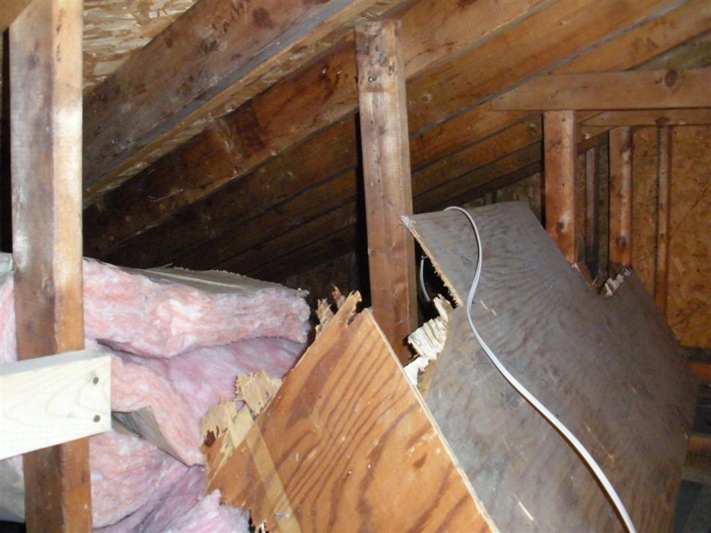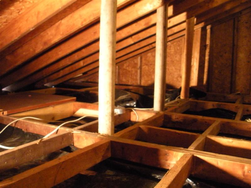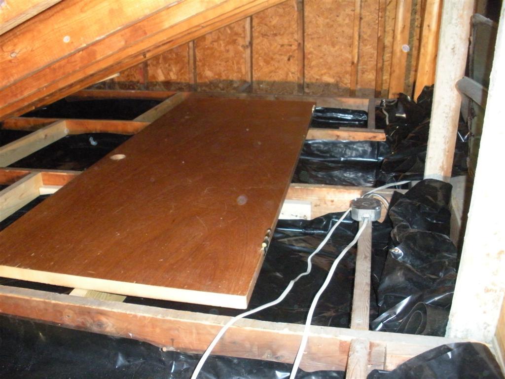 Well, we are still slowly but surely making progress on the attic insulation. All the wood is torn out; most of the plastic is down. We still need to knock out the cover some genius put on the ends of the overhang. Seriously, the more I work on this garage and the house the more I want to go find the guy that did all this stuff and demand to know what in the world he was thinking. Oh well. I also sealed the entry door up much more nicely. Until we can replace it completely this will have to do.